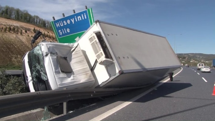 İstanbul'un Çekmeköy ilçesine bağlı Kuzey Marmara Ankara istikametinde Çekmeköy mevkiinde Erol Masalcı hakimiyetindeki kapalı kasa kamyon, virajı alamayarak önce bariyerlere çarptı, ardından da yan yattı.