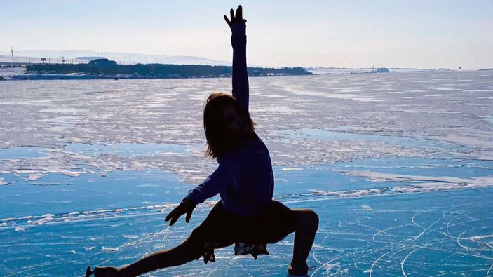 Artistik buz pateni dalında milli sporcu İklim Şentunalı, Ardahan ve Kars sınırlarında buz tutan Çıldır Gölü üzerinde buz pateni yaptı.