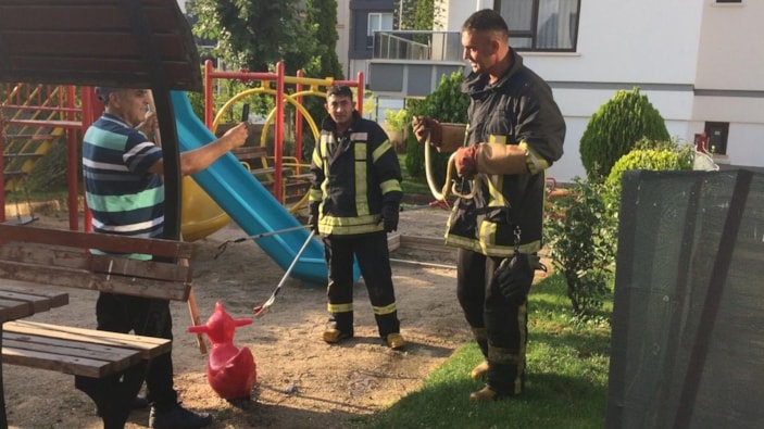 Çocuk parkına yılan girdi