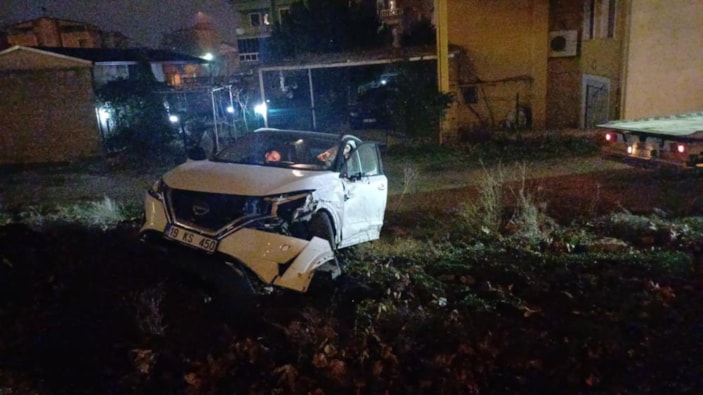 Daha sonra yoldan çıkan otomobil boş arazide durabildi.