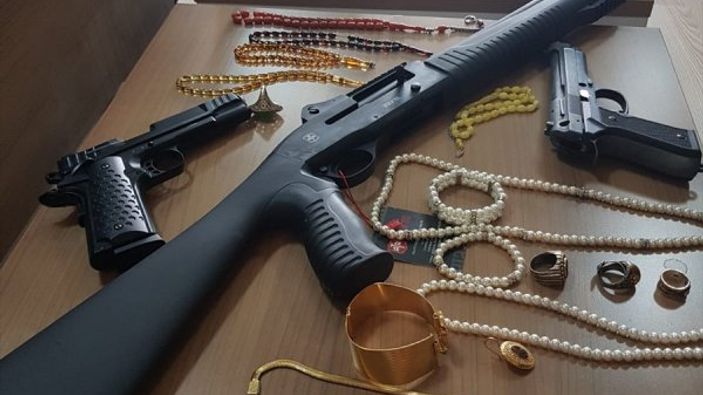 Otelde yapılan aramada, Binevler'deki evden çalınan dizüstü bilgisayar, kol saati ve kurusıkı tabancanın yanı sıra 13 değişik markalarda kol saati, 12 gümüş yüzük, 5 tespih, çeşitli takı malzemeleri, altın renginde imitasyon takı seti, ruhsatsız tüfek ve 2 kurusıkı tabanca ele geçirildi.