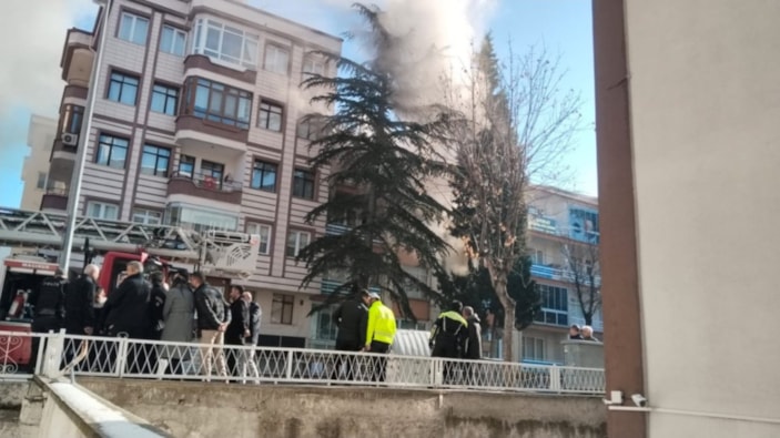 Bina sakinleri korku ile kendilerini dışarıya atarken, itfaiye ekipleri evde çıkan yangına da müdahale etti.