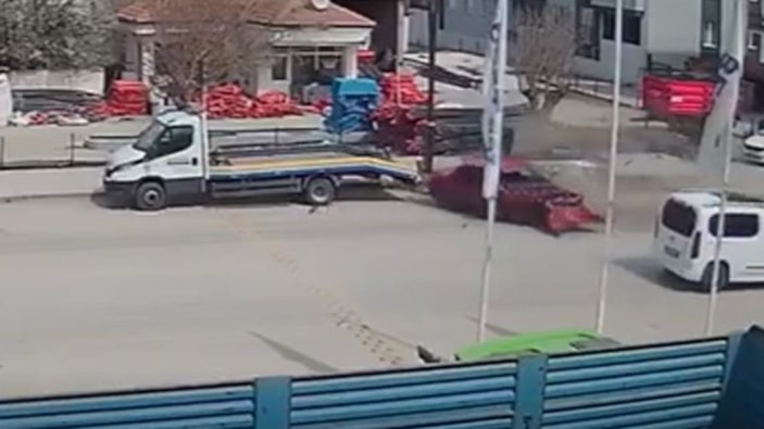 Öte yandan kaza bir iş yerinin güvenlik kamerasına yansıdı.