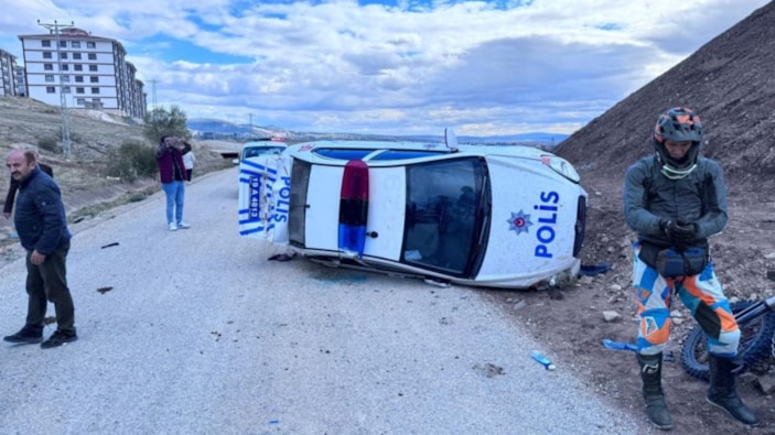 Çorum'da şüpheli aracı kovalayan polis otosu takla attı: 2 yaralı