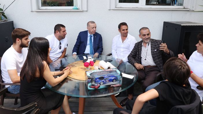 Daveti kabul eden Erdoğan, vatandaşlarla birlikte çay içip sohbet etti.