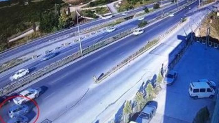 İki otomobilin arasından makas attıktan sonra bariyerlere çarpıp havada asılı kalan aracın, görüntüleri ortaya çıktı.