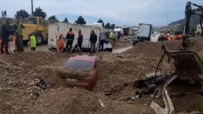 Her iki yöne de kilometrelerde araç kuyruğunun oluştuğu bölgede, ekipler tarafından arama kurtarma çalışması başlatıldı.
