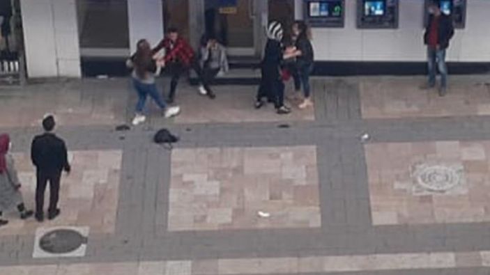 Tartışma kısa süre içinde büyüyerek kavgaya dönüştü. Kızlar kavga ederken, aralarındaki erkek ise onları ayırmaya çalıştı.