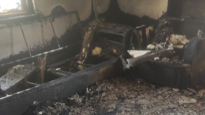 Ekipleri tarafından söndürülen yangının ardından ev kullanılamaz hale geldi.