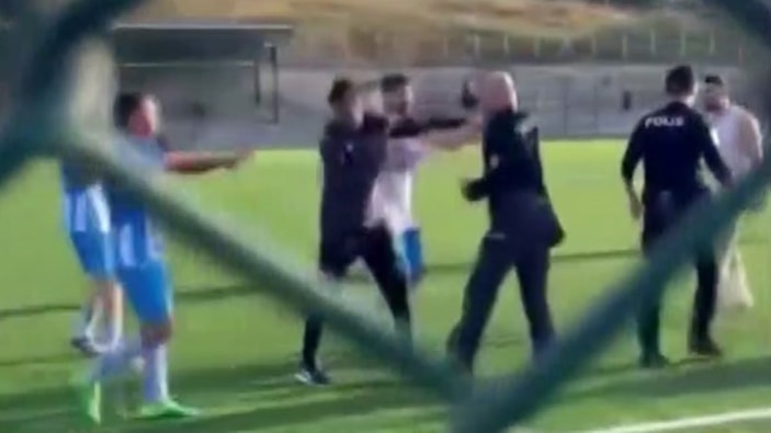 Bir polis memurunun, futbolcuları ayırdıktan sonra kendisine yönelen oyunculara ve teknik ekibe biber gazı sıkması, cep telefonu kamerasıyla kaydedildi. Görüntülerde memurun, kendisini sakinleştirmeye çalışan kişilere de biber gazıyla karşılık verdiği görüldü.