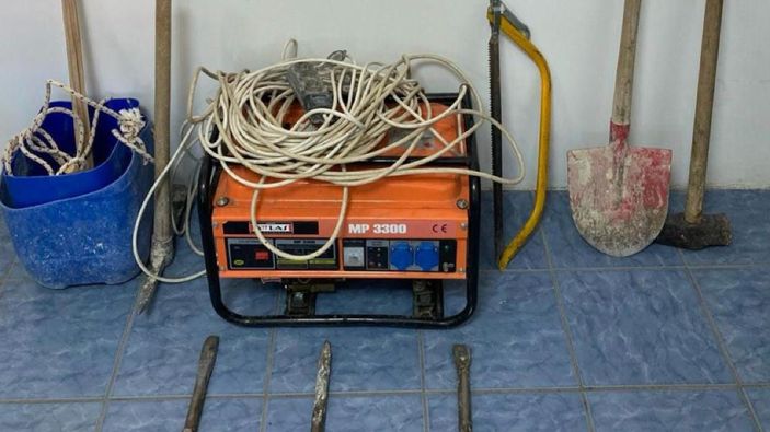 Operasyon kapsamında E.Ş., M.B., A.E., ve S.Ç. gözaltına alınırken bir adet jeneratör, 3 adet delici başı, balyoz, kazma, kürek ve 25 metre uzunluğunda kablo ele geçildi.