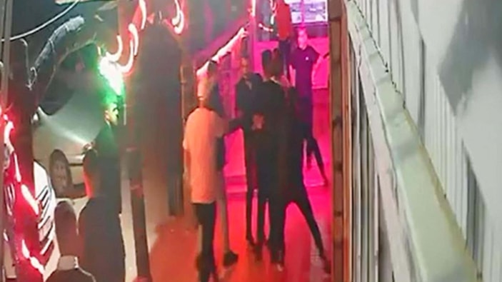 Görüntülerde, tartışma sonrası çalışanların iki tarafı ayırmaya çalışması ve Karahan'ın bıçakla Tamer Cura'nın yanına yaklaşıp, kasığından yaralaması yer alıyor.