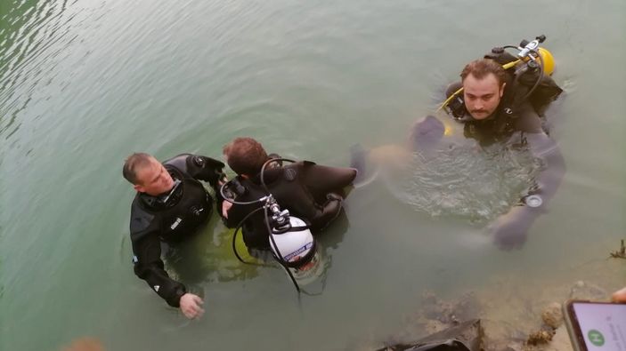 Olay yerine ulaşan itfaiye ekibinin balık adamları baraj göletinde arama yaptı.