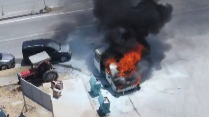 Minibüsten yükselen alevleri görenlerin ihbarıyla bölgeye itfaiye ekipleri sevk edildi.