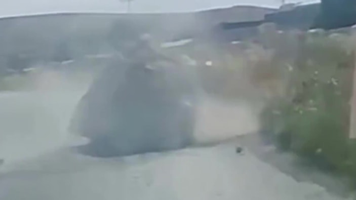 Facianın kıl payı atlatıldığı anlara ait görüntülerde, virajı dönen tırın dorsesinden mermer bloğun yola düştüğü ve otomobilin manevra yaparak mermere çarpmaktan kurtulduğu anlar yer aldı.