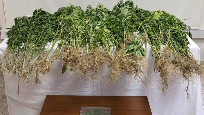 Adreste 343 kök kenevir bitkisi ve 102 gram esrar ele geçirildi.