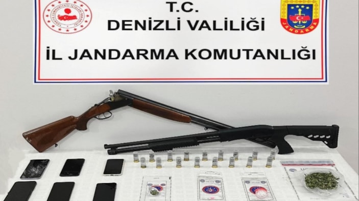 Yapılan operasyonlar neticesinde, 105 gram esrar, 5 gram metanfetamin, 1 adet uyuşturucu hap ve 2 adet av tüfeği ele geçirildi.