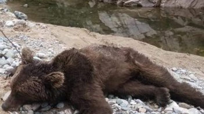 Dere kenarına inen ayıyı tüfekle öldürdüler
