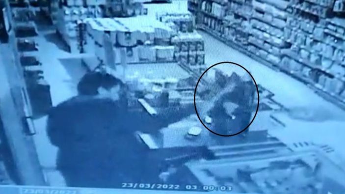 Cam kapısını kırıp, girdiği marketin kasasını açamayan M.C., elindeki keserle raflara ve vitrinlere zarar verdi. O anlar ise güvenlik kamerasına yansıdı.