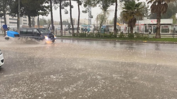 Adıyaman’da, aniden bastıran dolu yağışı kenti etkisi altına alırken, cadde ve sokaklarda da su birikintileri oluştu.