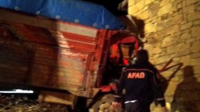 Duvara çarpan kamyonda sıkışan 2 kişi yaralandı