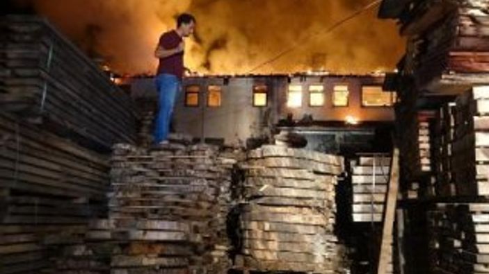 Altı kereste atölyesi olan 3 katlı evde yangın çıktı.