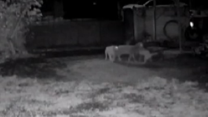 Güvenlik kamerasına yansıyan görüntülerde, köpeklerin ağıldan çıkardıkları 3 küçükbaş hayvanı telef etmeleri de kaydedildi.