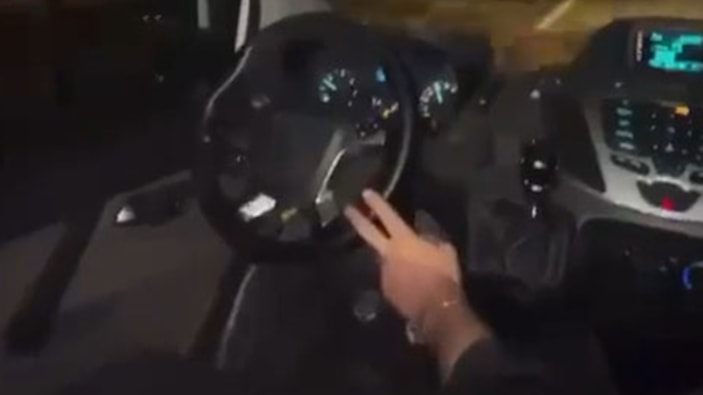 Düzce'de hafif ticari aracını yan koltuğa oturarak kullanan ve sosyal medyadan paylaşan sürücünün ehliyetine el konuldu ve idari para cezası uygulandı.