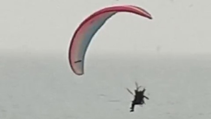 Düzce'nin Akçakoca ilçesi Osmaniye Mahallesi'ndeki Çınar Plajı bölgesinde paramotorla uçuş yapan Ali G., motor arızası nedeniyle inişe geçti.