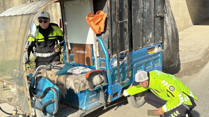 Şehir merkezinde devriye halindeki trafik ekiplerini fark eden 3 tekerlekli motosikletin sürücüsü, aracını bırakıp kaçtı.