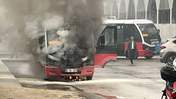 Düzce'de özel halk otobüsü alev aldı.