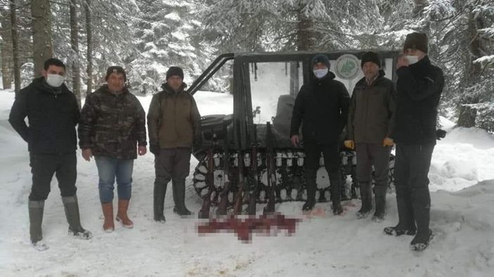 Ekipler 5 kilometre boyunca izleri takip ederek, ormanlık alanda tüfekle vurdukları karacayı parçalara ayıran 7 kişiyi suçüstü yakaladı.