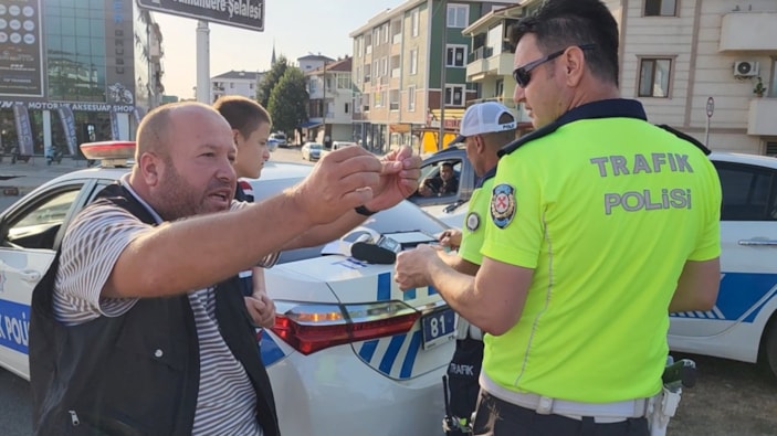 Düzce'de kasksız yakalanan motosikletli: Bana ceza yazmayın, alo desem 10 kask gelir