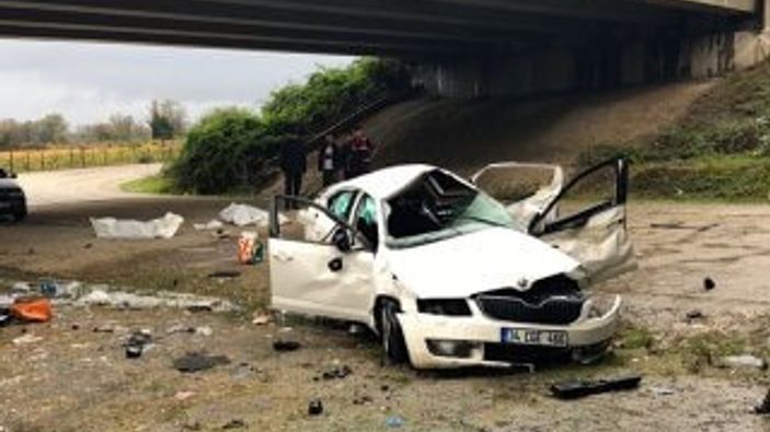 Kontrolden çıkan seyir halindeki araç, bariyerleri aşarak viyadükten aşağı uçtu.