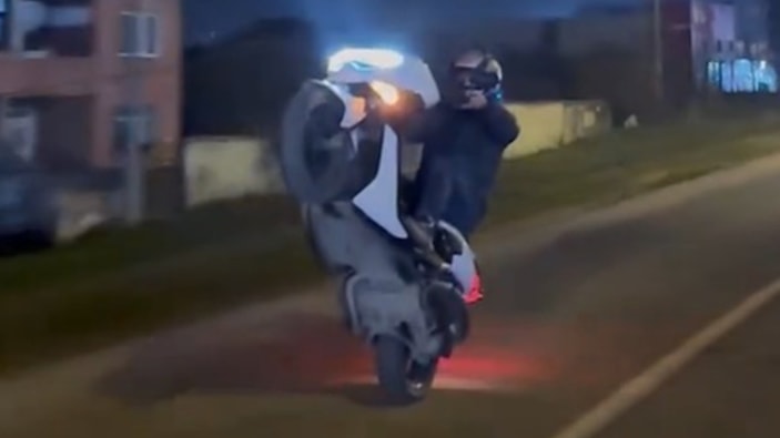 Düzce'de motosiklet üzerinde akrobatik ve tehlikeli hareketler yapan Muhammed Nuri K., bu görüntüleri sosyal medyada paylaştı.
