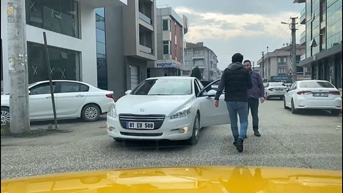 Otomobil sürücüsü, taksi önüne kırınca tartışma yaşanacağını düşünerek aracından indi ve taksiciye doğru adım attı.