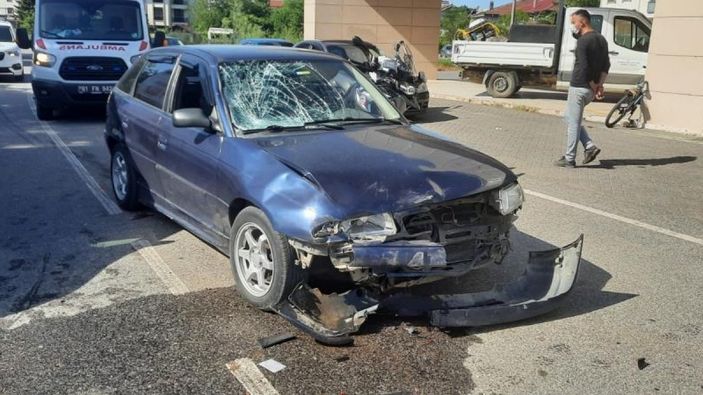 Çarpışmanın etkisi ile elektrikli bisiklette bulunan sürücü yola savrulurken, yolcu olarak bulunan Y.K. otomobilin üzerine düştü.