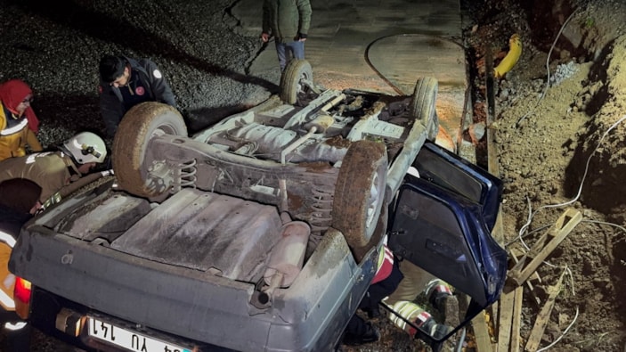 Sürücüsünün yolu karıştırması sonucu inşaat çukuruna düşen otomobil takla atarken, kazada sürücü yaralandı.