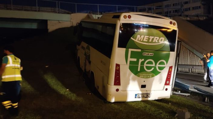 Yoldan çıkan midibüs önce bariyerlere çarptı, ardından da yeşillik alana çıkarak durabildi.