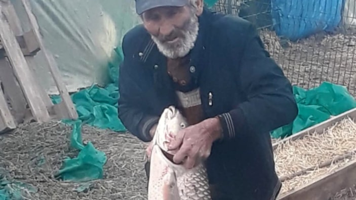 Yürük, tekneye çektiği balığın, 1 metre boyunda ve 13 kilo ağırlığında sazan balığı olduğunu fark etti.