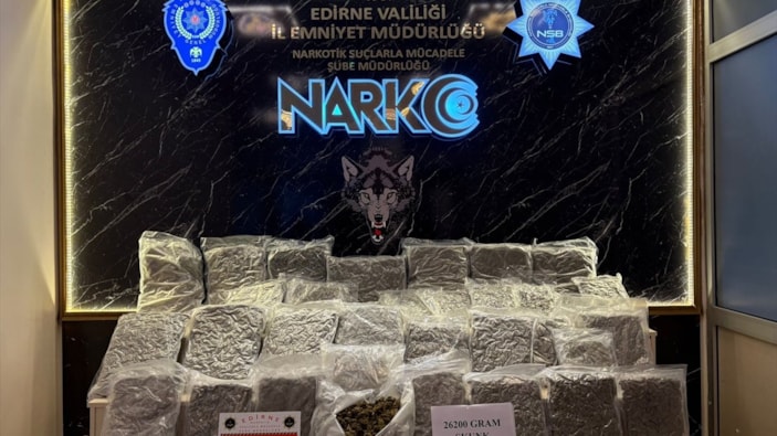 Edirne'de bir otomobilde 26 kilo 200 gram sentetik uyuşturucu ele geçirildi