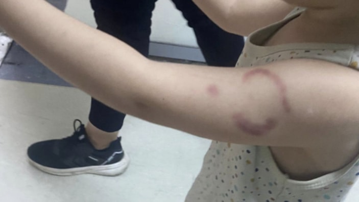 Kızıyla konuşan baba, kızının kolunu göstermesi üzerine buradaki morluk ve ısırılma izini görmüştü.