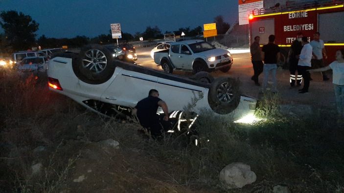 Edirne'de saat 21.00 sıralarında Edirne-Kapıkule Sınır Kapısı karayolu üzerinde ehliyetsiz sürücü E.B.K. (17), yönetimindeki otomobil, şerit ihlali sonucu karşı yönden gelen otomobille çarpıştı.