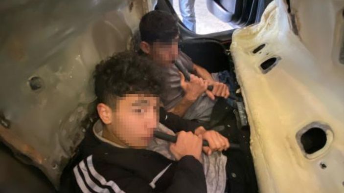 Aracın gizli bölmesine saklanan göçmenlerin, nefes almak için hortum kullanarak bağlantı yaptıkları, yakalanmasalardı havasızlıktan ölebilecekleri belirlendi.