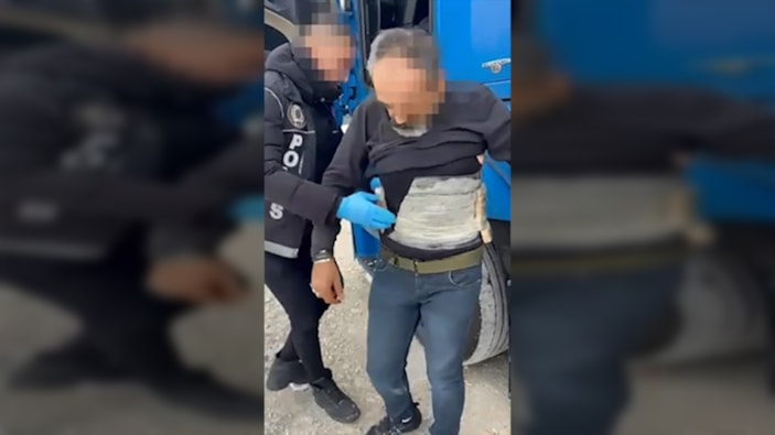 Yapılan aramada tır şoförü İ.K.'nin vücuduna bantla sarılmış vaziyette 900 gram taş kokain ile 400 gram reçine esrar yakalandı.