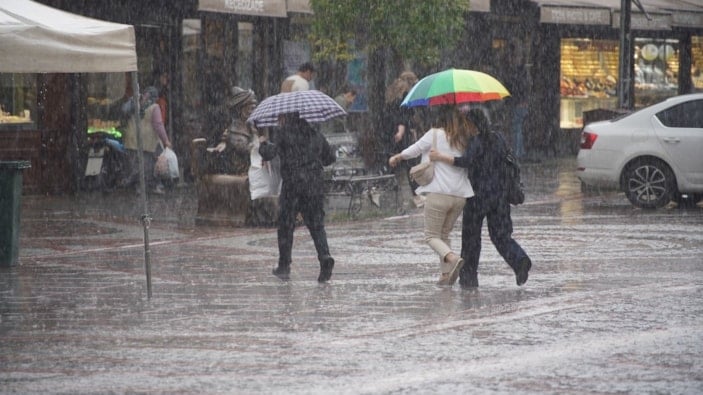 Vatandaşları hazırlıksız yakalayan sağanak sonrası birçok kişi, korunmak için iş yerlerinin tentelerinin altına sığındı