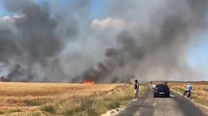 Edirne'de tarla yangını: 50 dönüm buğday küle döndü