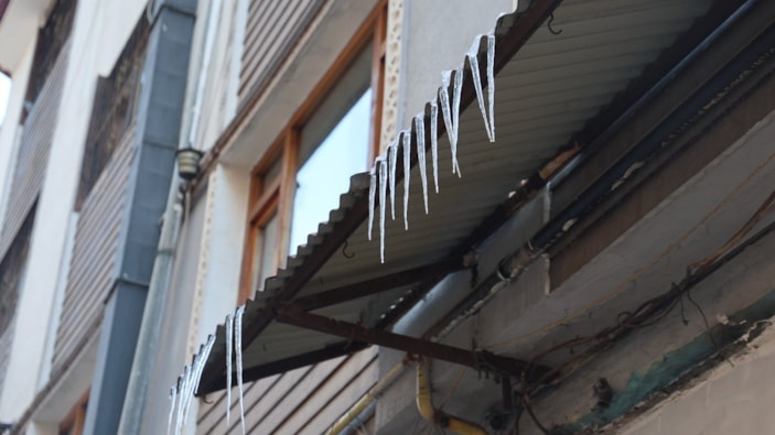 Hava sıcaklığının eksi 9 dereceyi gösterdiği Elazığ'da, kuru soğuk ve ayazın da etkisiyle çatılarda buz sarkıtları oluştu.