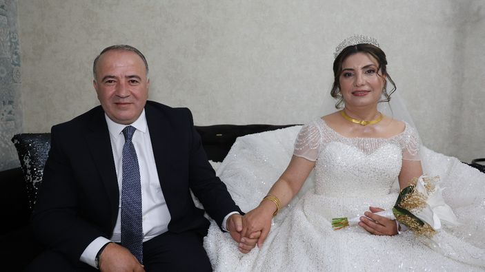 Evlilikleri hayırlı olsun, Allah mutlu mesut etsin. Diyarbakır'dan, İzmir'den gelen ve Elazığ'dan katılan arkadaşlarımız var." ifadelerini kullandı.