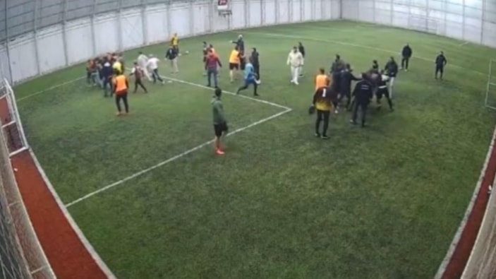Olay anı halı sahanın güvenlik kameralarına yansıdı.